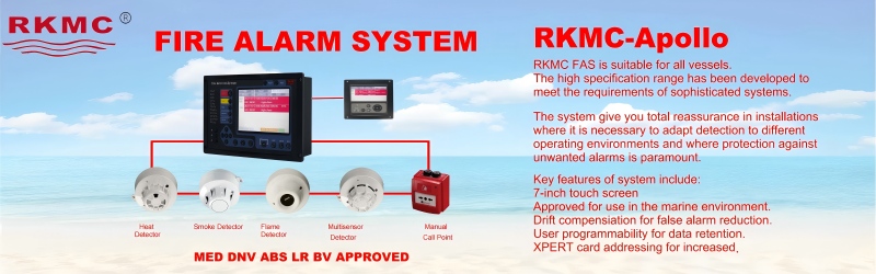 4. RKMC船舶火灾报警系统:和国际知名火警探头HONEYWELL和APOLLO合作,集成了先进的探测技术与智能报警逻辑,覆盖机舱、货舱、控制站等所有关键区域。系统通过MED、DNV、ABS、BV、LR、CCS、RINA、KR等全球主流船级社认证,能够快速、准确地识别火情,并联动消防系统,最大限度降低火灾损失。集合HONEYWELL APOLLO的全球业绩有上千条,RKMC国内主要业绩有扬州金陵船厂法国SOGESTRAN 4300DWT欧盟旗化学品船,欧洲知名船东BOSKALIS WESTMINSTER SHIPPING B.V海工等。
